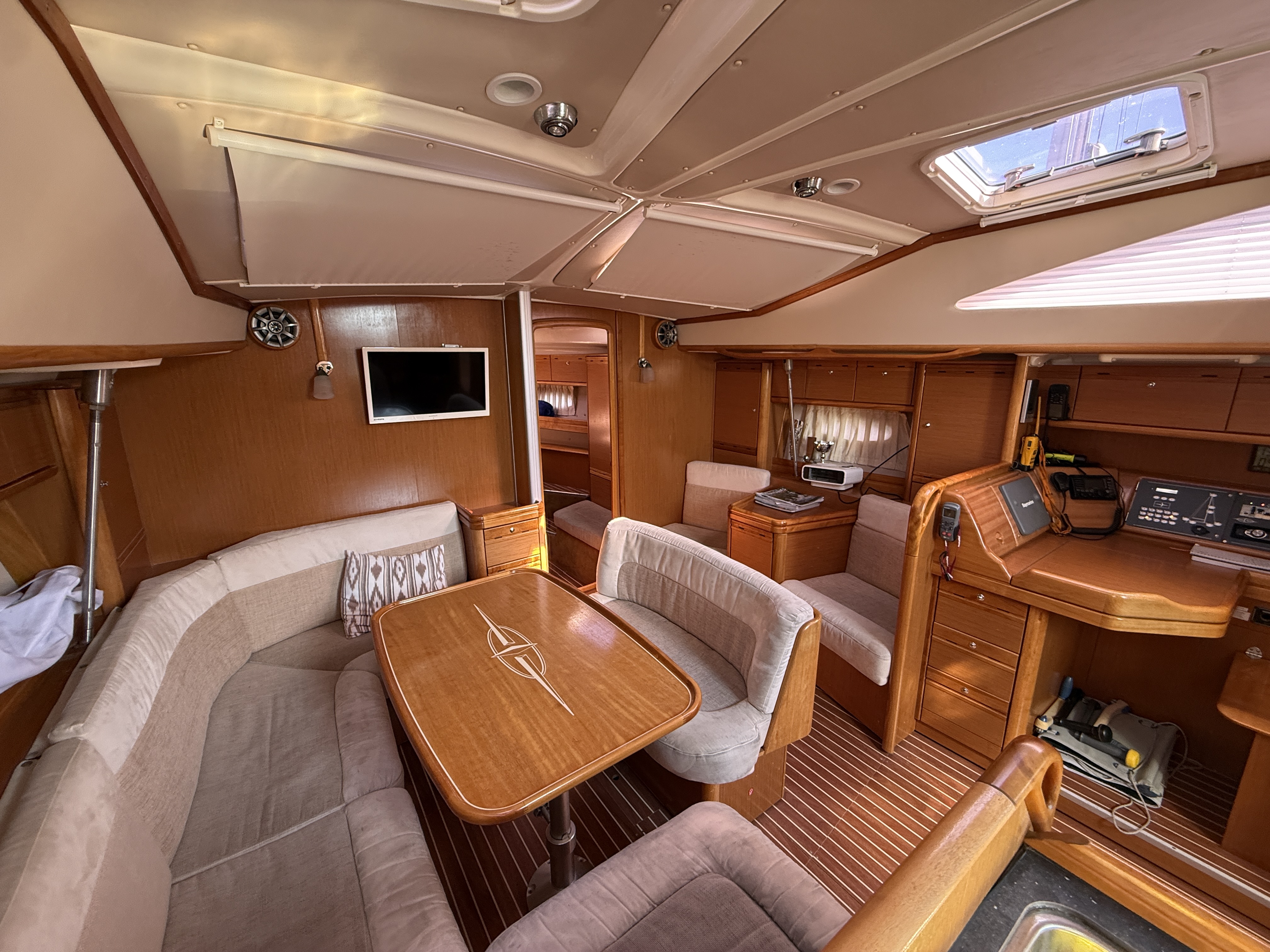 Mesa extensible en cubierta teca