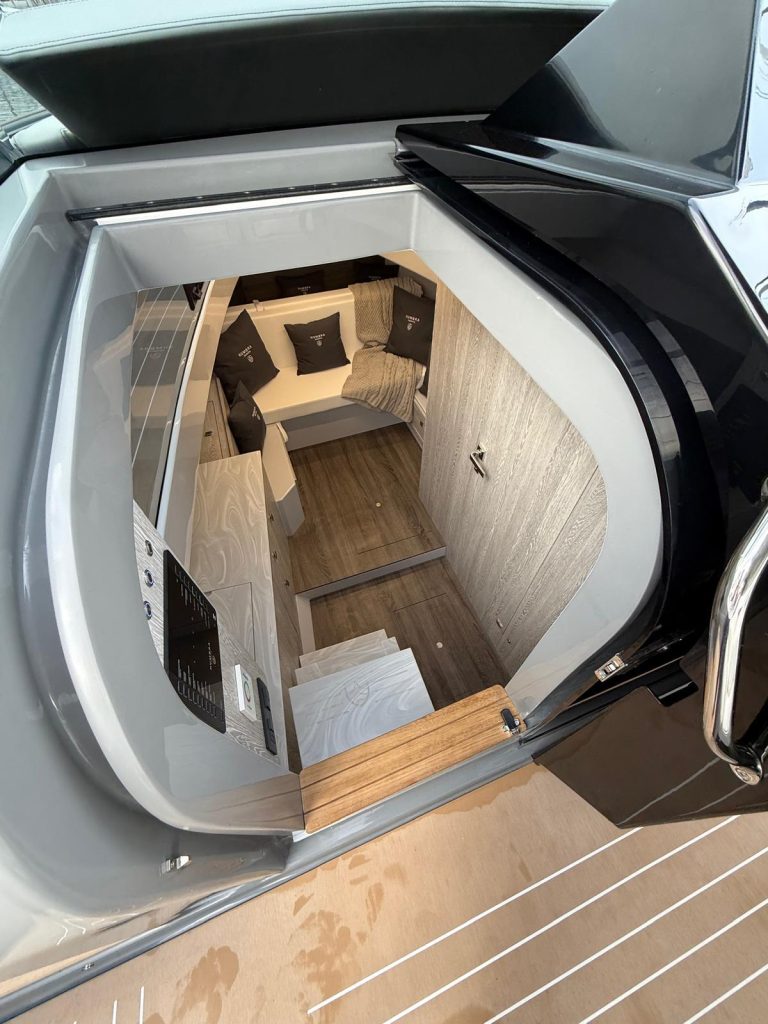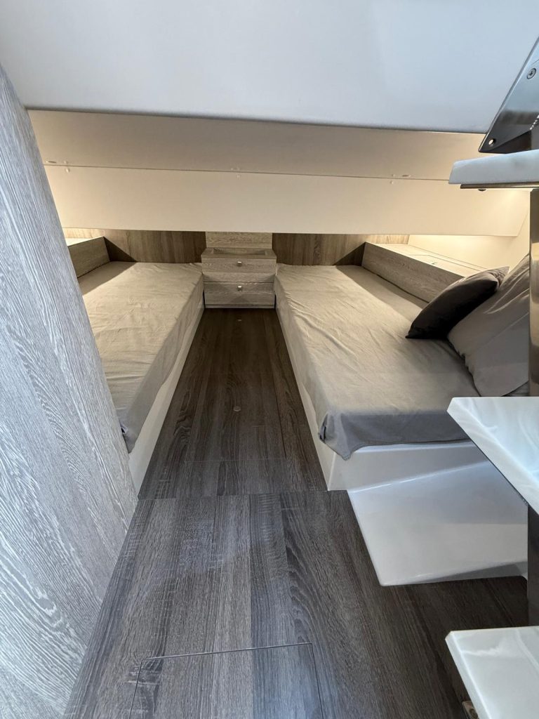 Cama doble en proa convertible en sofá