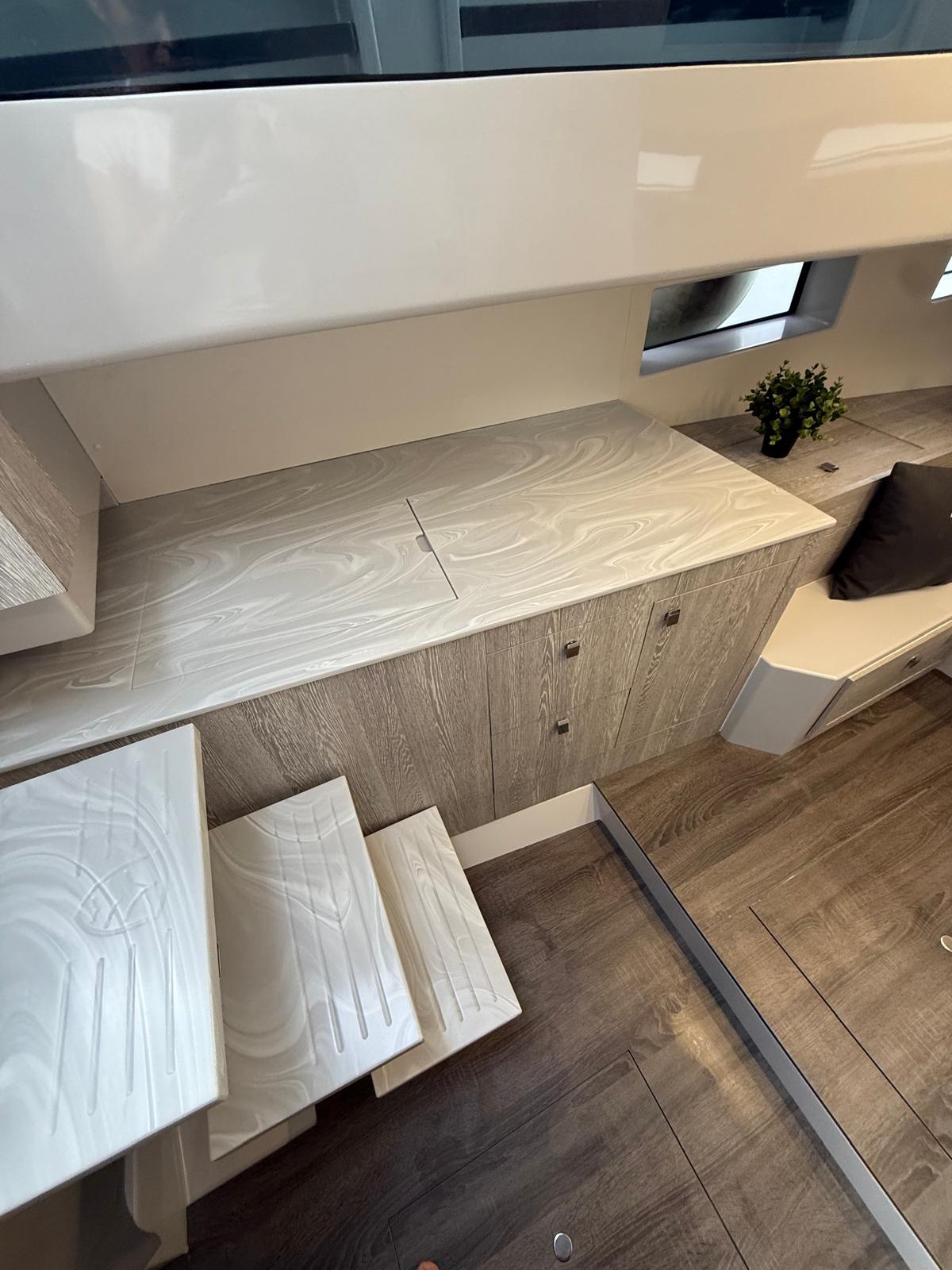 Cama doble en proa convertible en sofá