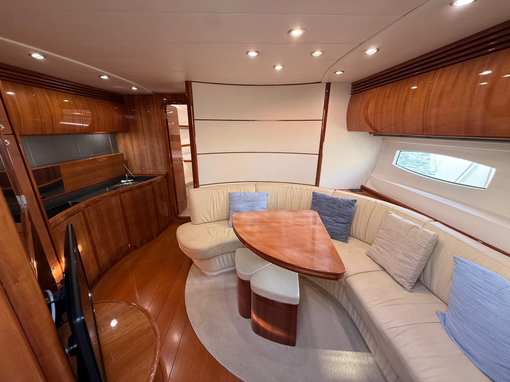 El prestigioso astillero italiano Pershing Yachts, parte del grupo Ferretti, es sinónimo de deportividad, lujo y calidad de construcción. La Pershing 46 destaca por su navegación rápida, estable y segura, con un diseño atemporal que combina confort y prestaciones, ofreciendo un comportamiento en mar excepcional incluso a altas velocidades.