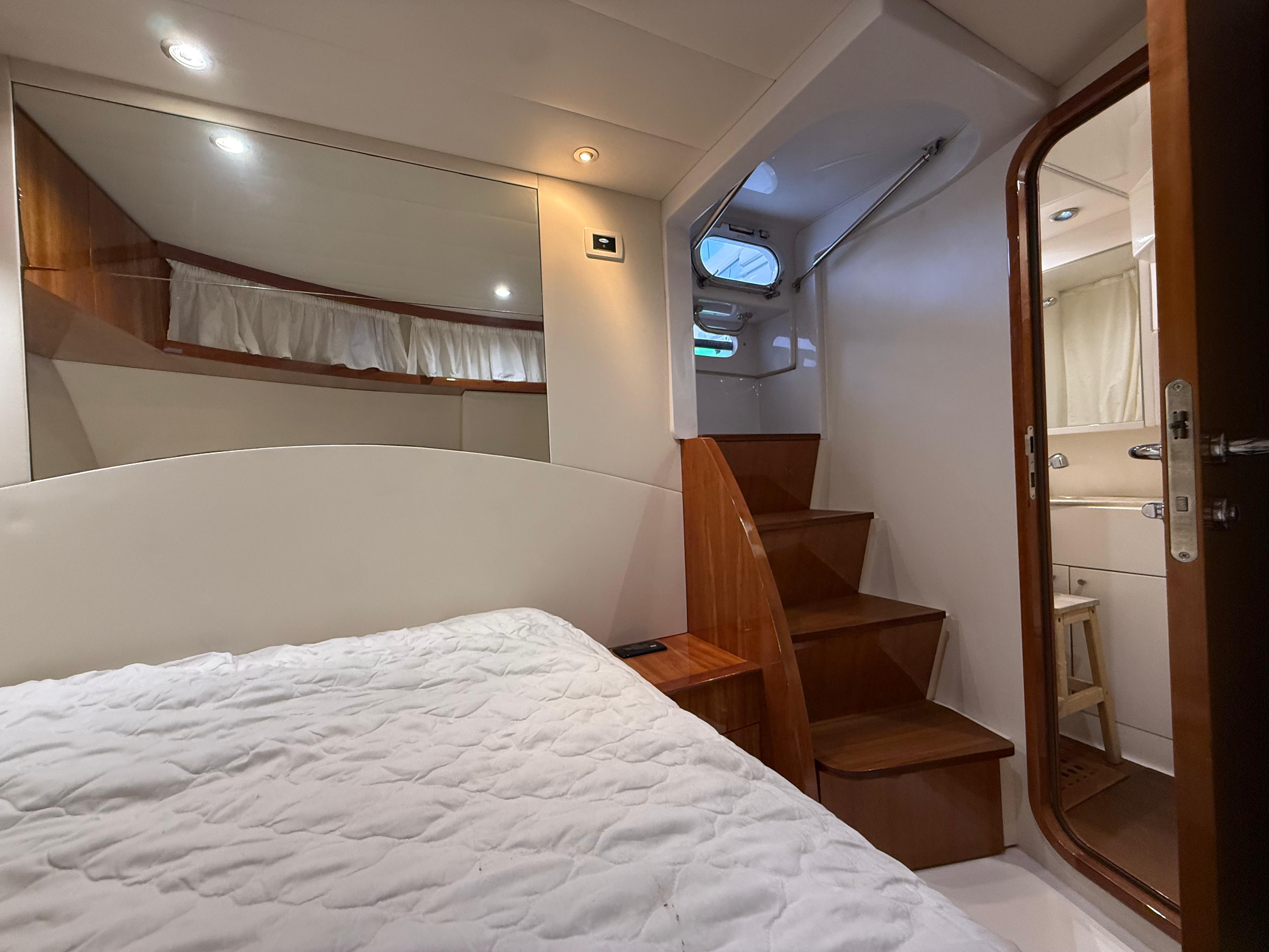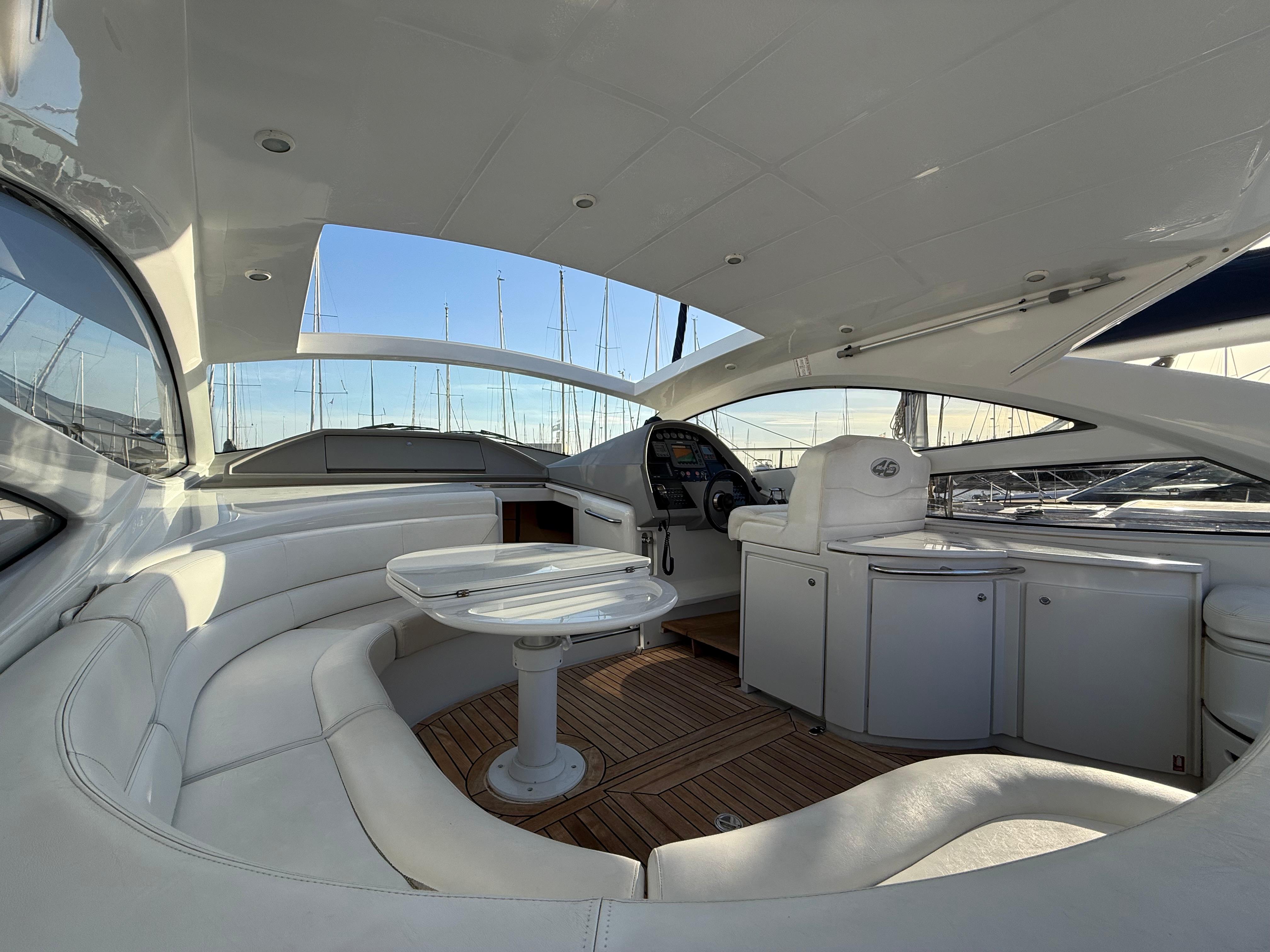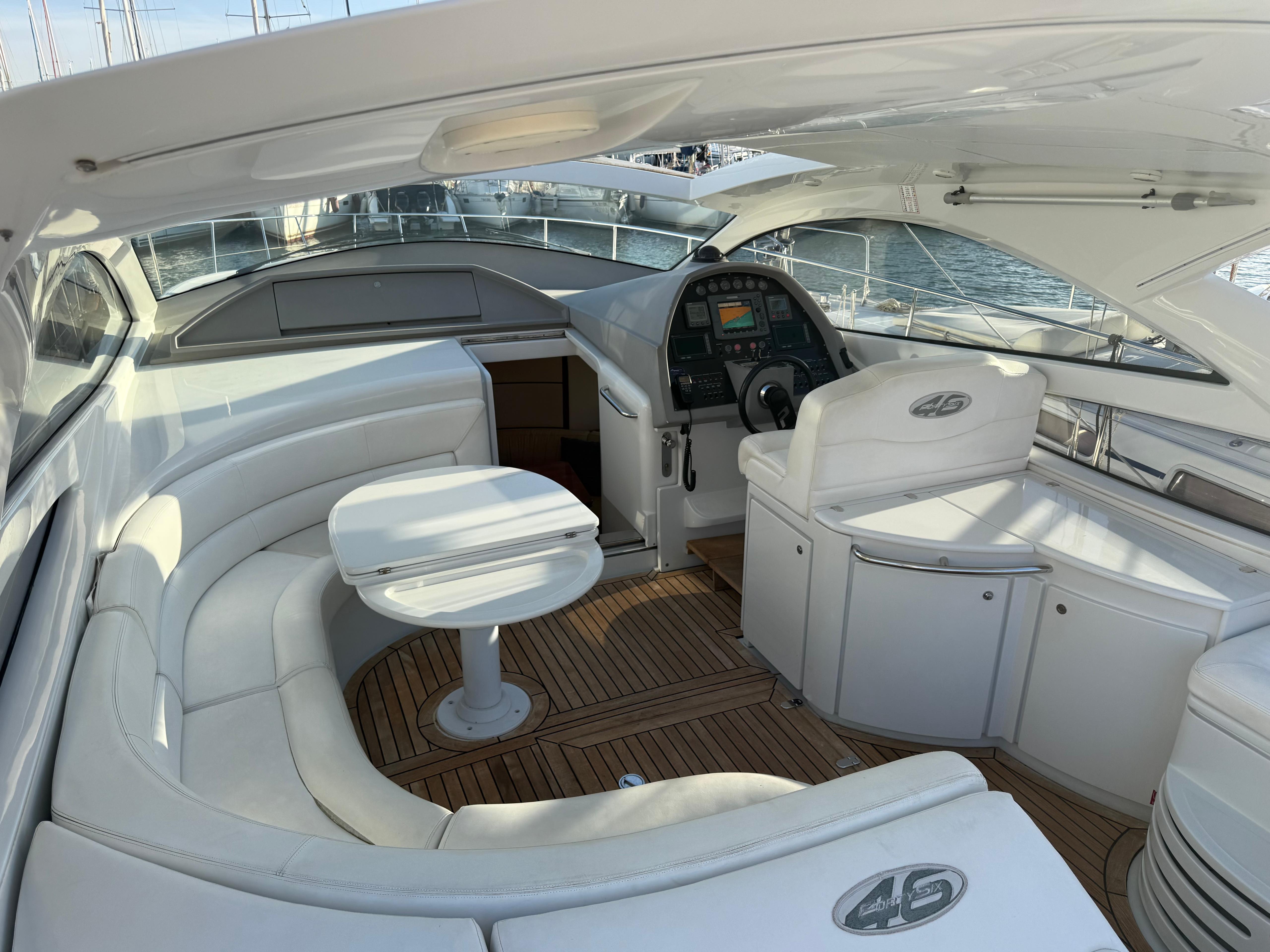 El prestigioso astillero italiano Pershing Yachts, parte del grupo Ferretti, es sinónimo de deportividad, lujo y calidad de construcción. La Pershing 46 destaca por su navegación rápida, estable y segura, con un diseño atemporal que combina confort y prestaciones, ofreciendo un comportamiento en mar excepcional incluso a altas velocidades.