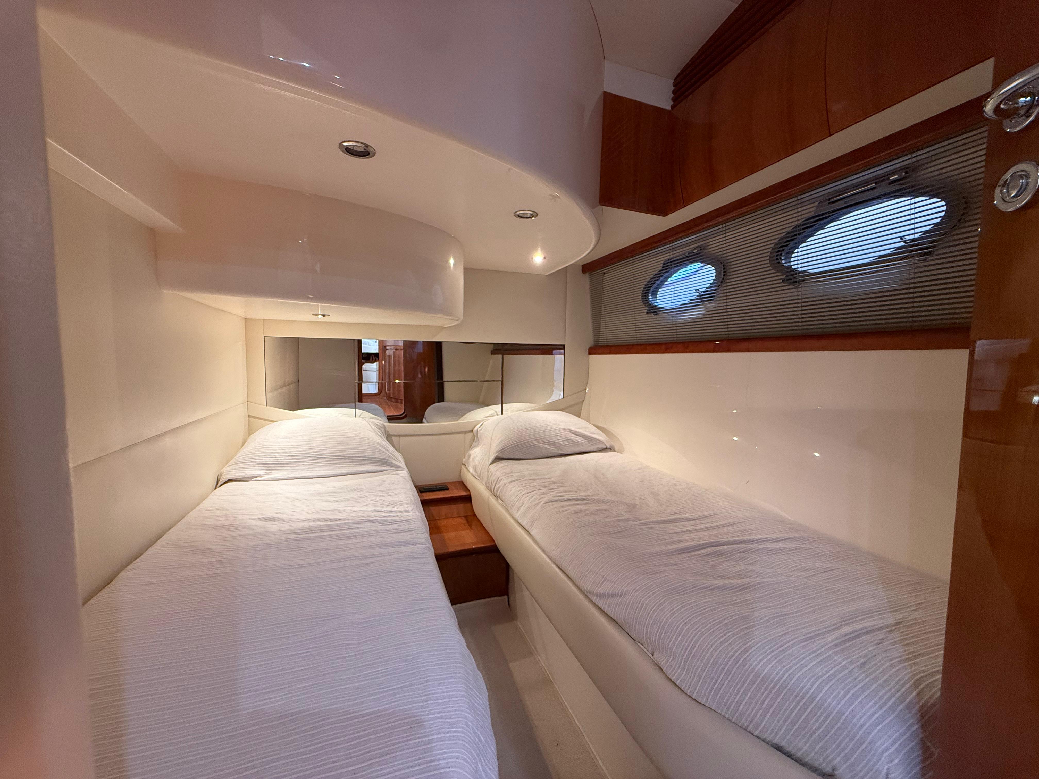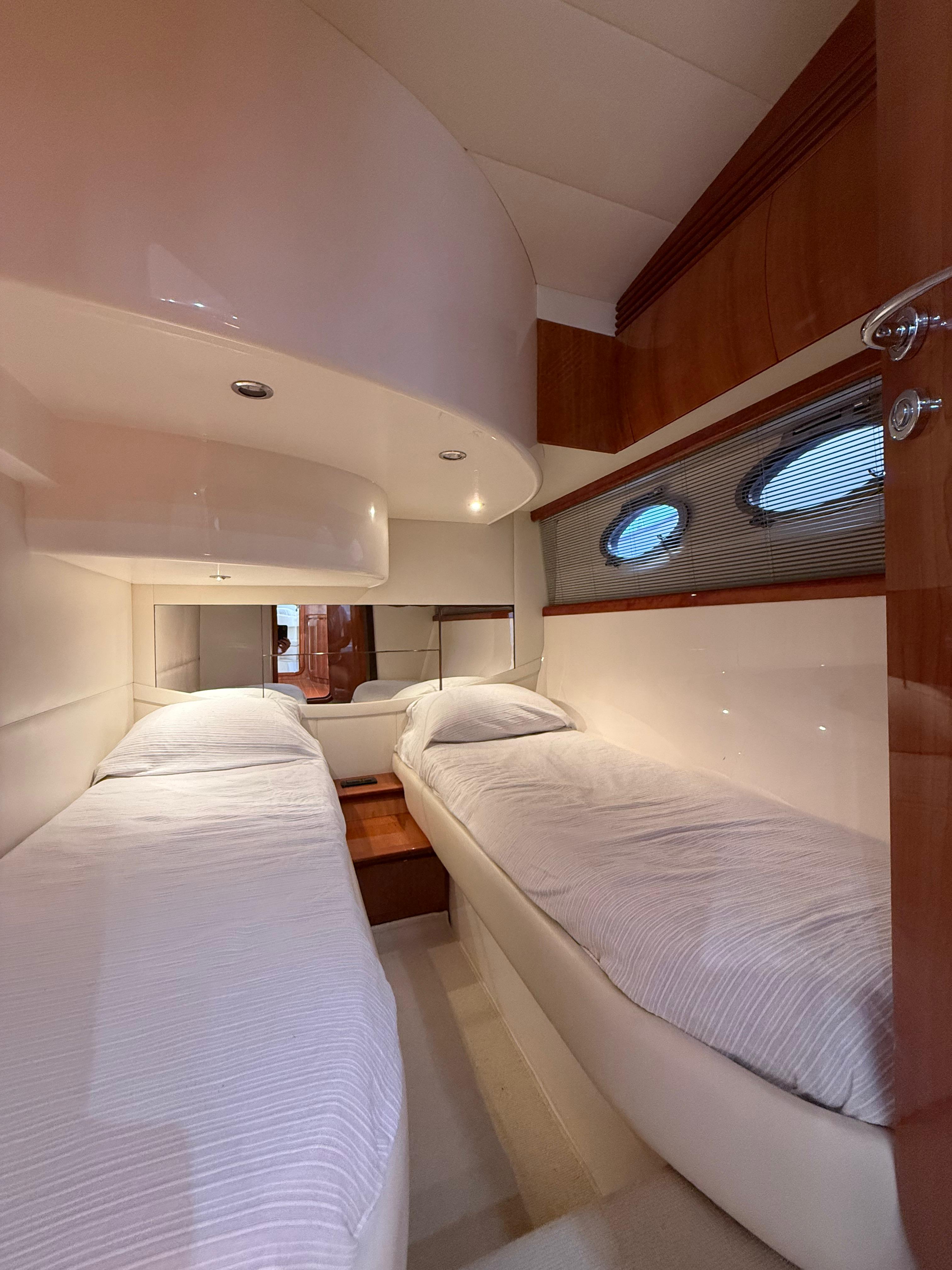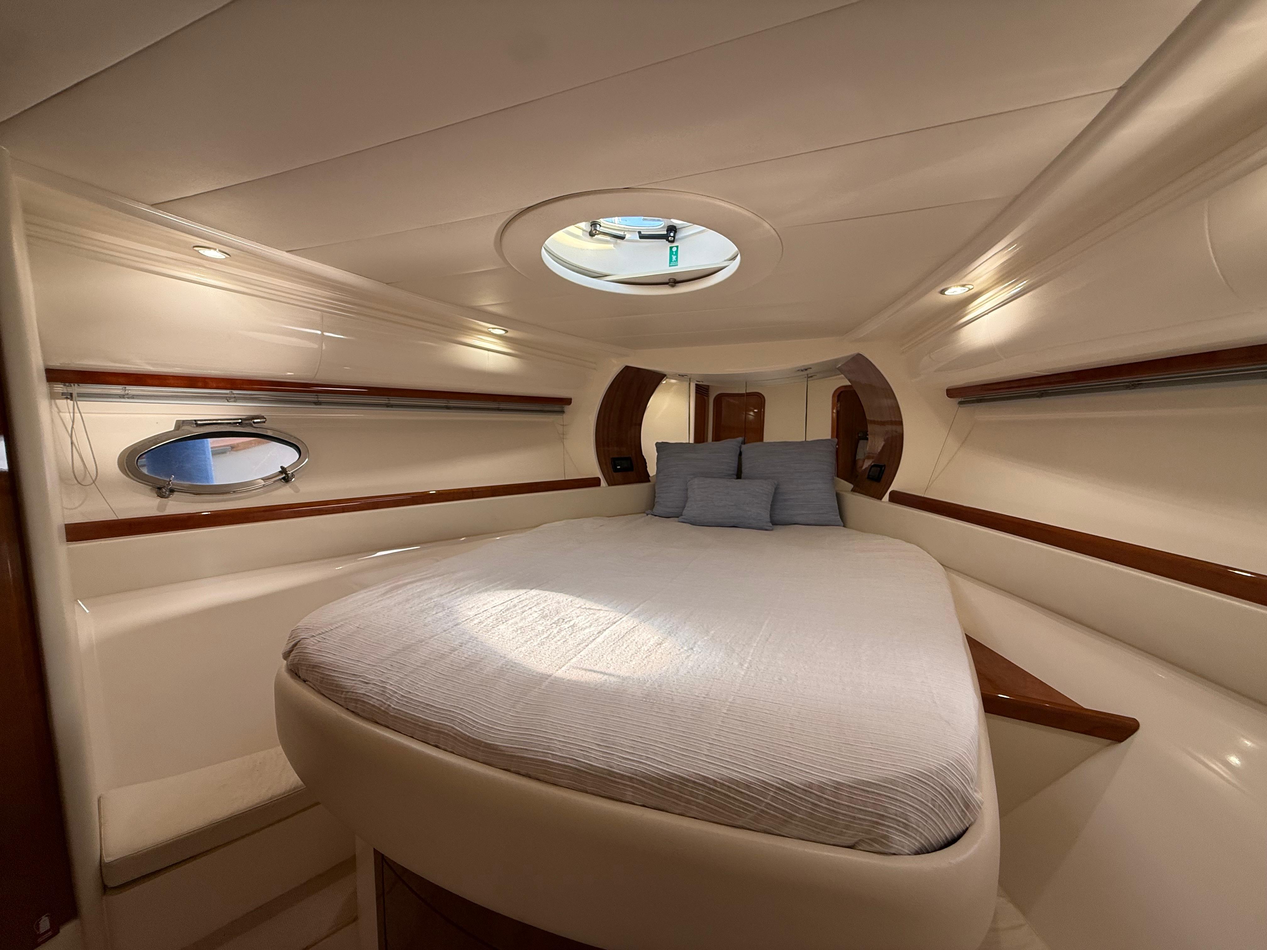 El prestigioso astillero italiano Pershing Yachts, parte del grupo Ferretti, es sinónimo de deportividad, lujo y calidad de construcción. La Pershing 46 destaca por su navegación rápida, estable y segura, con un diseño atemporal que combina confort y prestaciones, ofreciendo un comportamiento en mar excepcional incluso a altas velocidades.